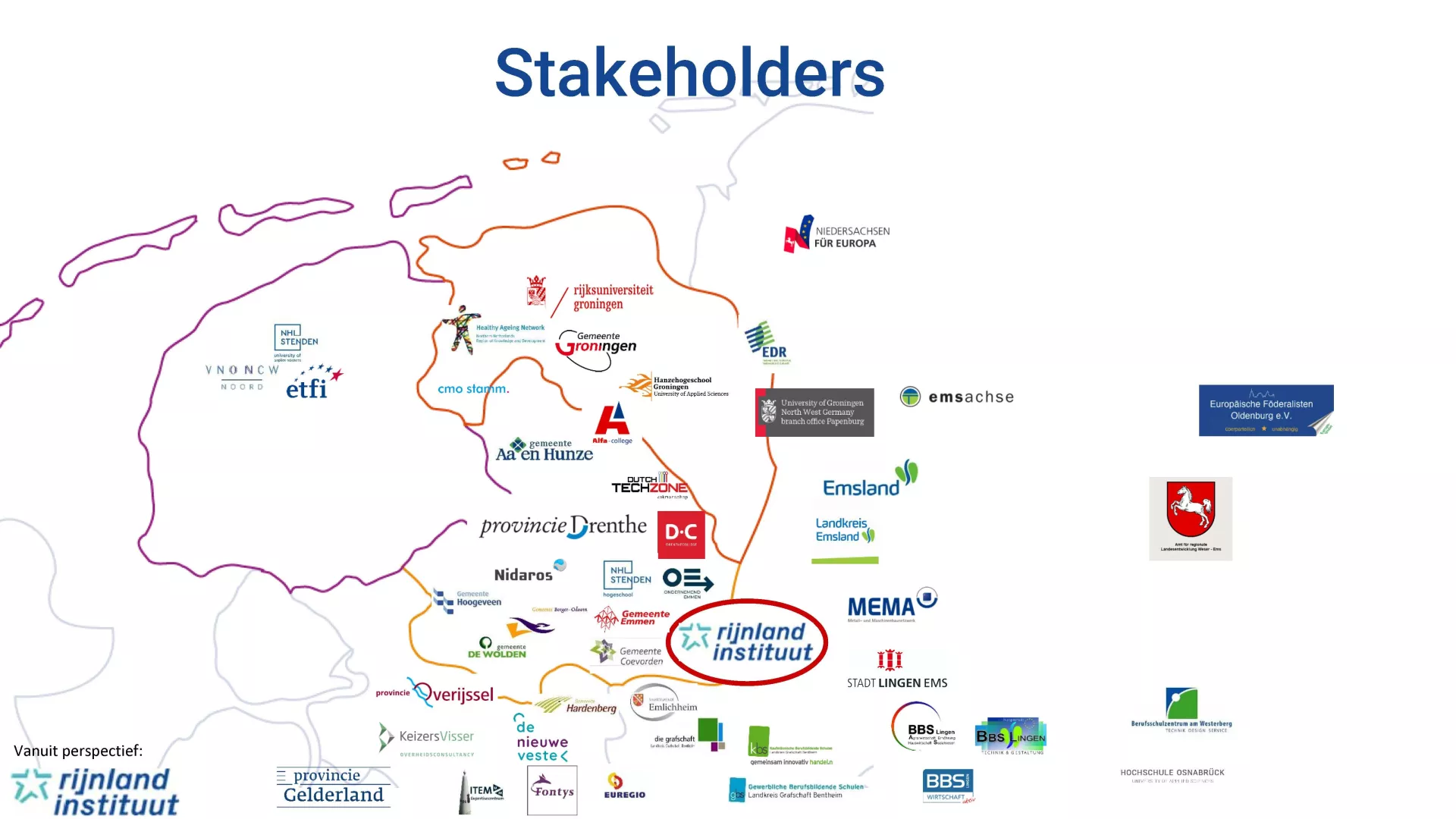 Het Rijnland Instituut is een samenwerkingsverband tussen NHL Stenden hogeschool, Alfa-college, Hanzehogeschool, Hochschule Osnabrück, verschillende Berufsbildende Schulen in Lingen (Wirtschaft&Verwaltung, Technik&Gestaltung, Agrar&Soziales), de Gewerbliche Berufsbildende Schule am Westerberg (Osnabrück) en Drenthe College. Het is een kennisinstituut en netwerk voor internationale samenwerking in de grensregio Nederland - Nedersaksen, waarin kennis wordt ontwikkeld, gedeeld en toegepast door en voor het regionale beroepsonderwijs (hbo en mbo) en met partners in de beroepenvelden.